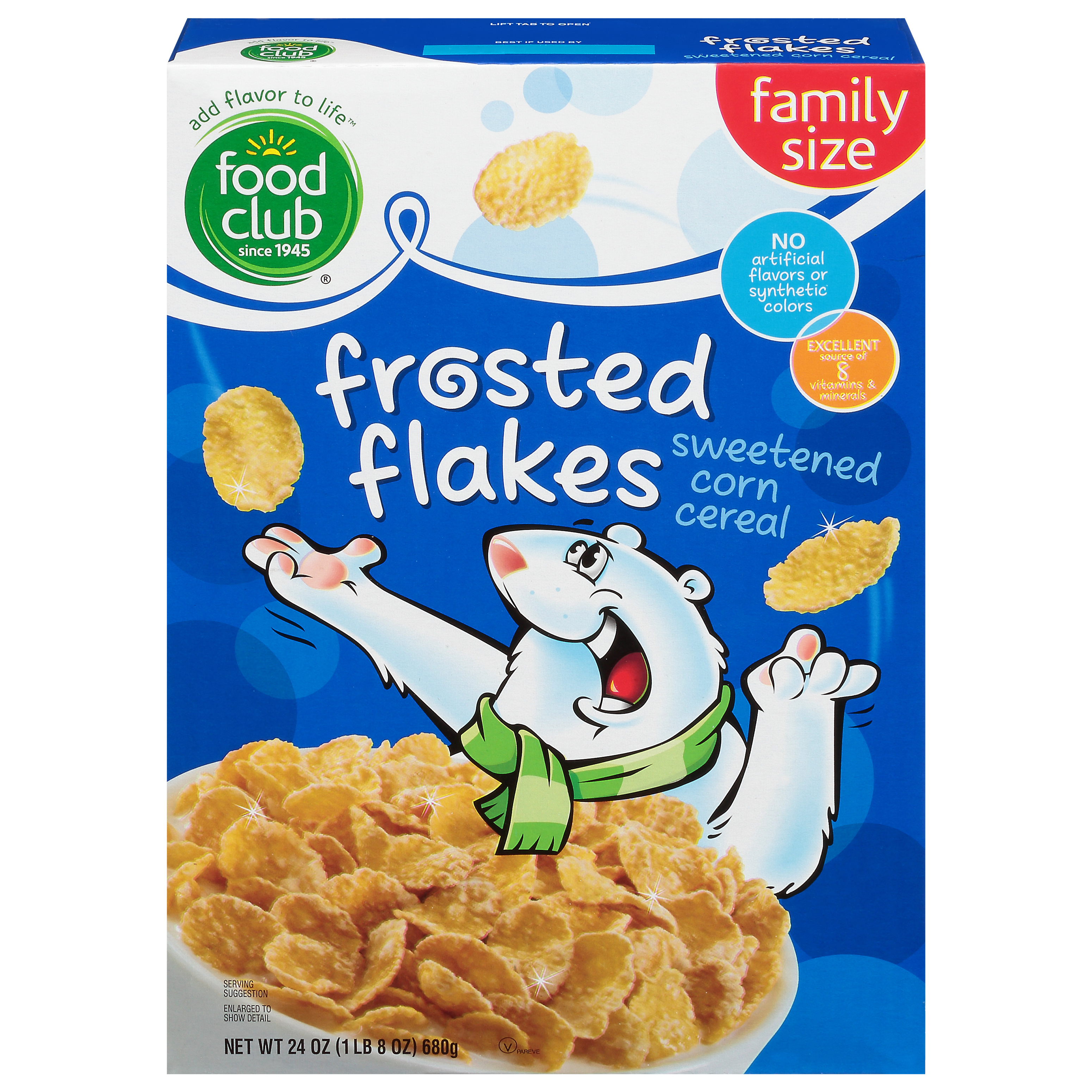 Food Club Frosted Flakes Cereal 15 oz Food Club Frosted Flakes Cereal 15 oz Food Club Frosted Flakes Cereal 15 oz NET WT 15 OZ (425g) 036800376939 Nutrition Ingredients Allergens Features & Benefits Company, Brand & Sustainability Per 1 Cup Cereal 150 Calories 0 Sat Fat (g) 150 Sodium (mg) 14 Total Sugars (g) Nutrition Facts About 11 serving (s) per container Serving Size 1 cup (38g)
