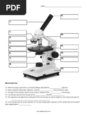 Microscope diagram worksheet