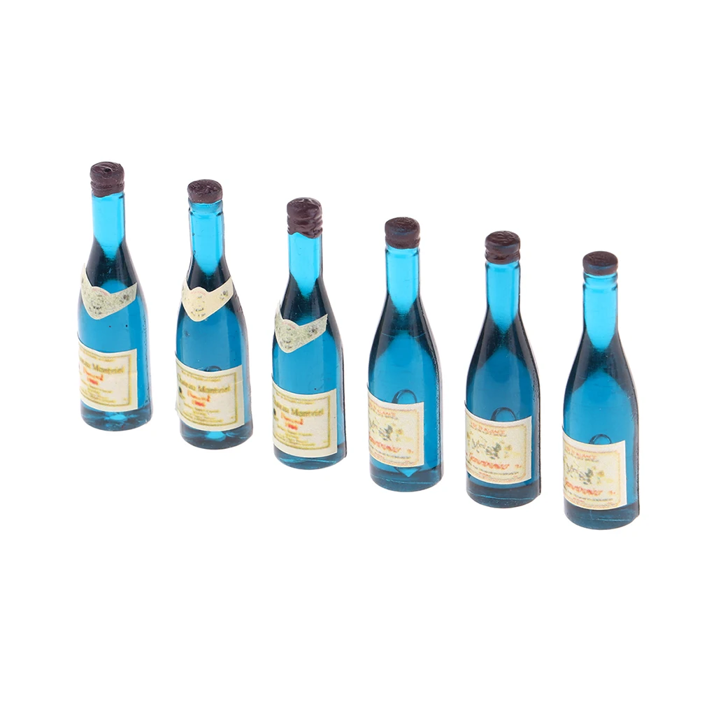 1/12 Scale 6 Pieces Wine Bottles Miniature Champagne Bottles miniature kitchen food toys - Dollhouse Miniature Bottles Set