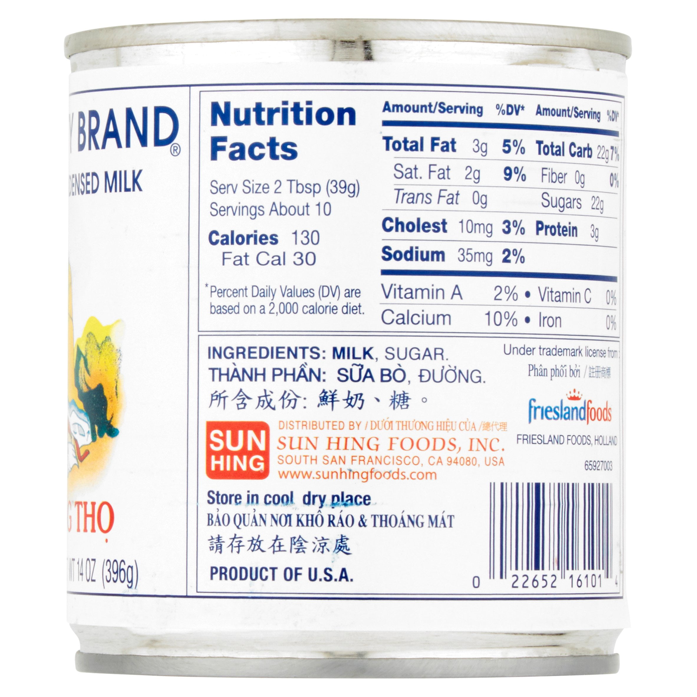 Sweetened condensed milk ingredients label