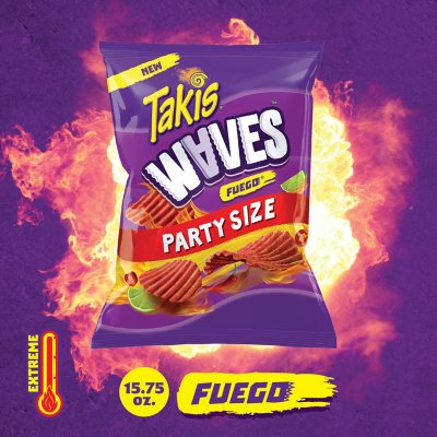 Takis Fuego Family Size Party Pack, 9.9 Oz (Pack of 3) Each bag 9.9oz. Takis Fuego chips have only 150 calories per serving، Made from high-quality ingredients, starting with real corn mesa، rolled for fantastic crunch and easy snacking. Takis chips have 2g of protein per serving Free of Trans fat, cholesterol and sugars decent source of fiber.