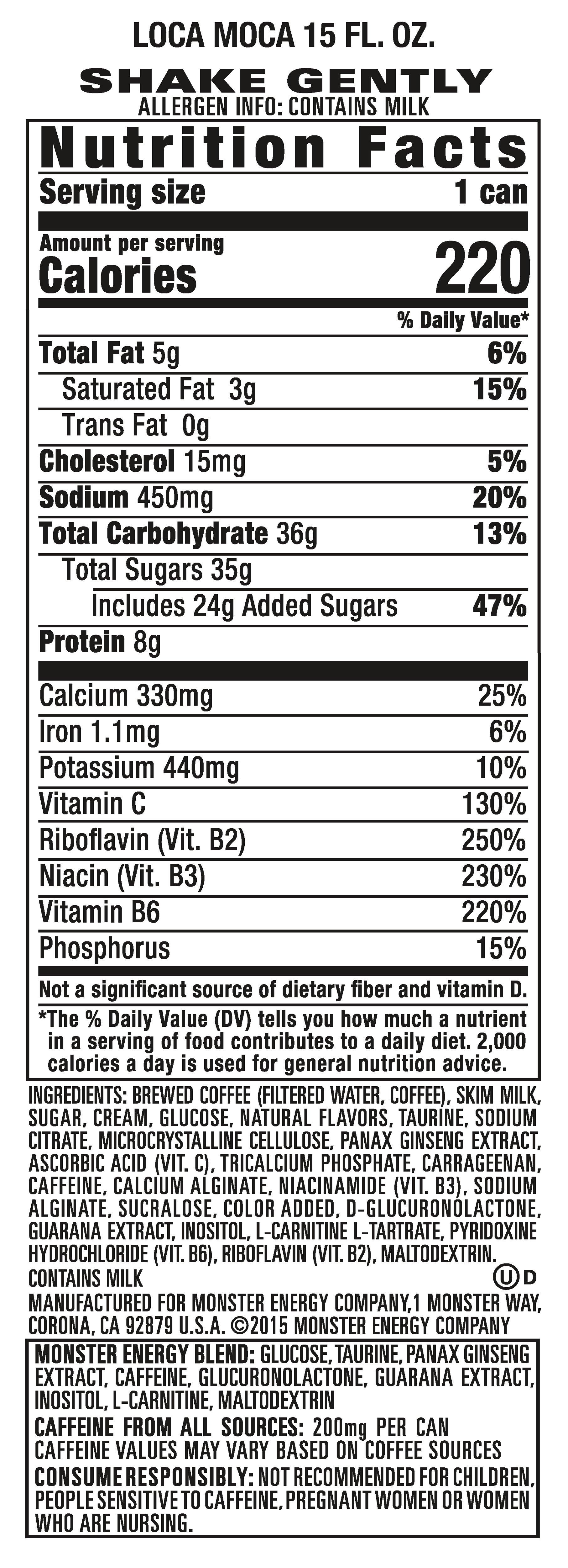 Monster Energy Java Coffee Loca Moca: Nutrition & Ingredients ...